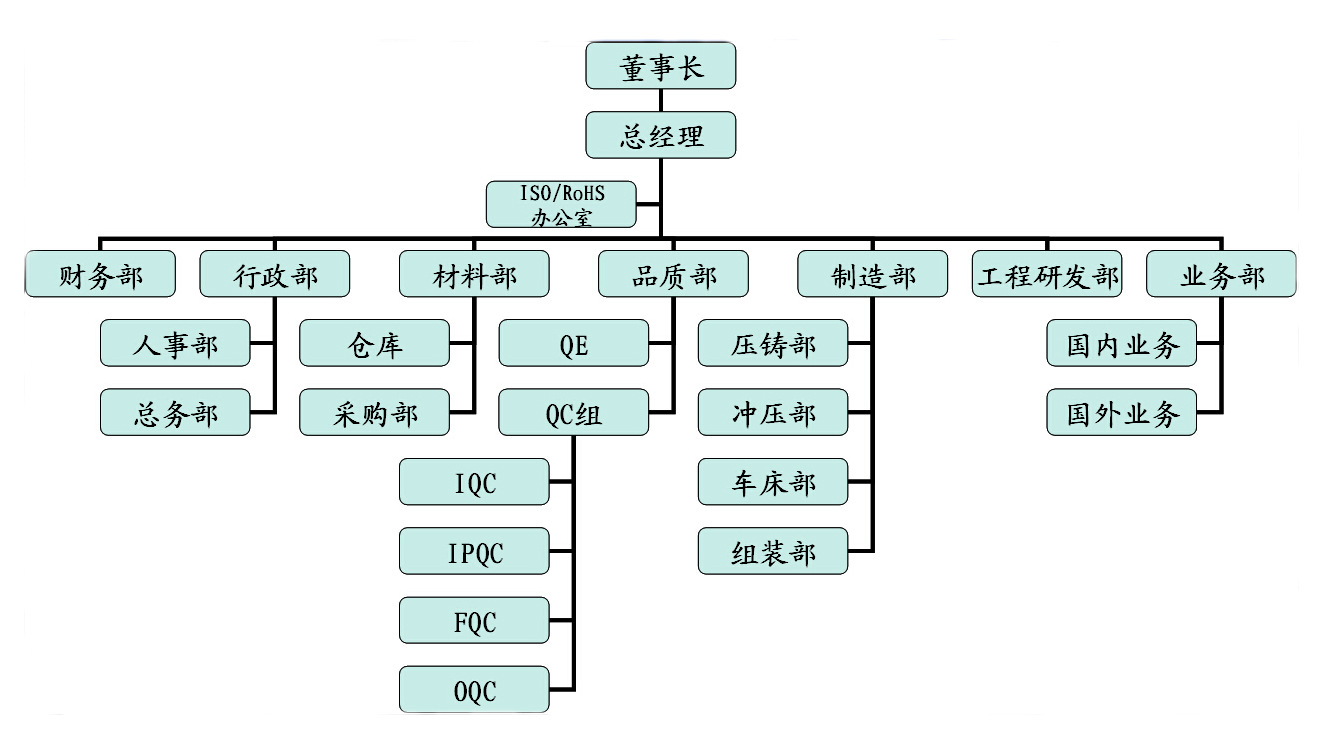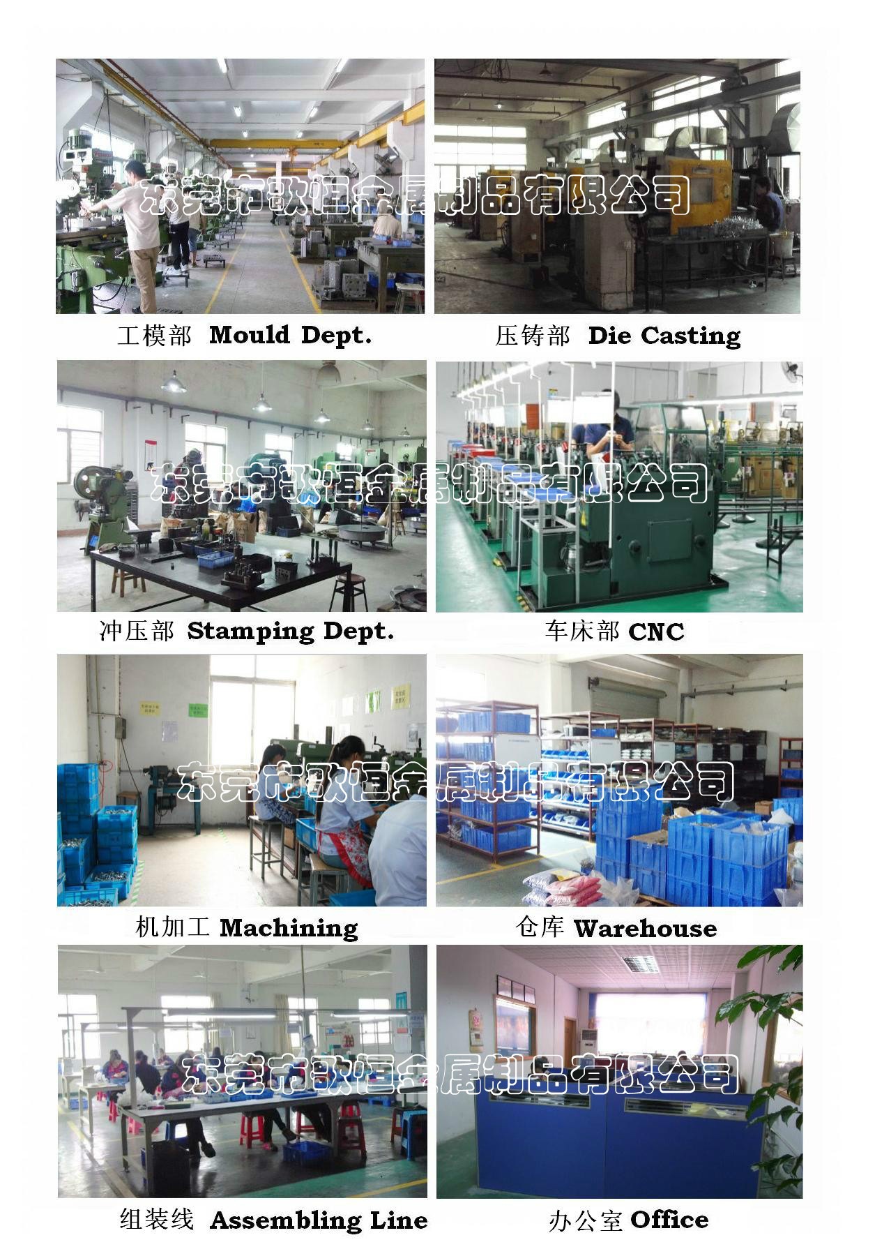 工厂有着6/10年的专业生产和研发经验,设有模具部,研发部,压铸部,冲压部,车床部,机加工部,装配部,质量部和包装部。