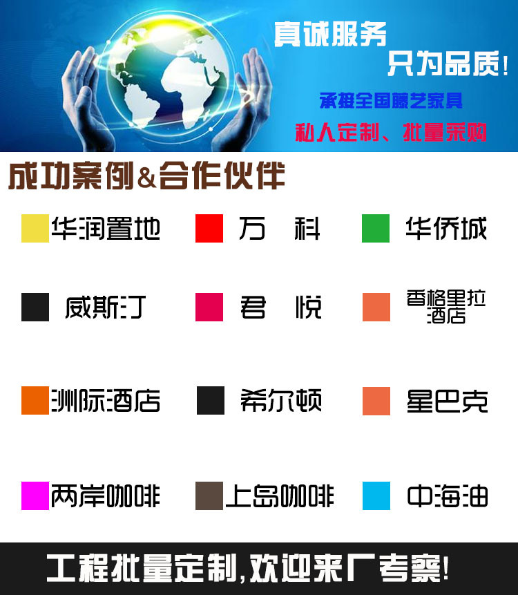 ★20年来传统的手工编织匠人技术积累,是集藤木家具,海草家具,仿藤家具产品设计,生产和销售为一体的