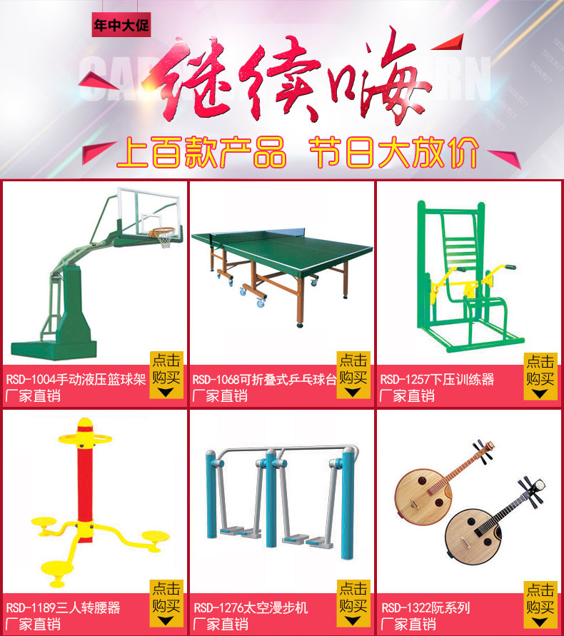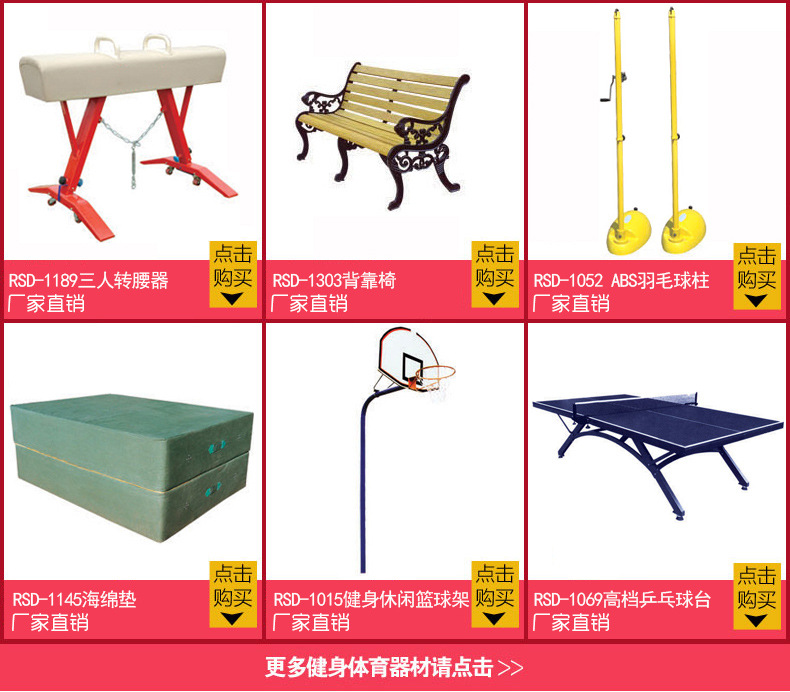 公司主要生产八个系列的篮球架,篮球板,室内外乒乓球,羽毛球,网,排,足球场,田径体操,举重装置,各种海绵垫,体操垫,户外健身路径及各种配套产品,近千个种类。