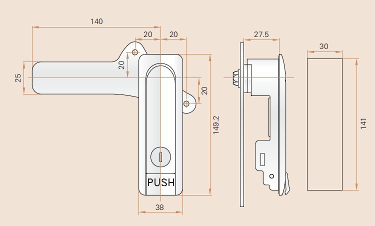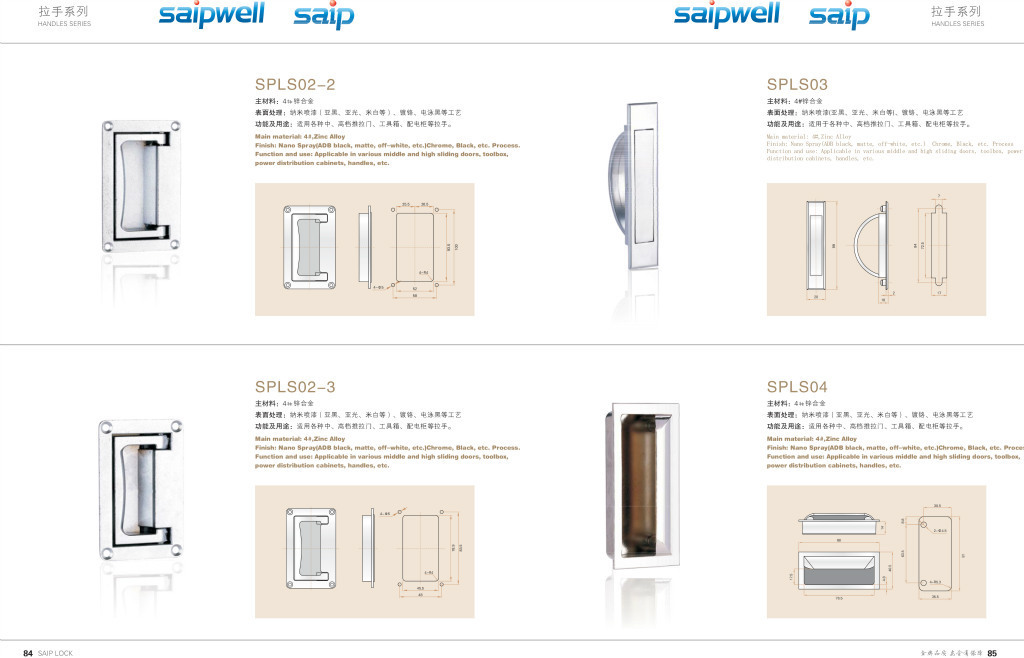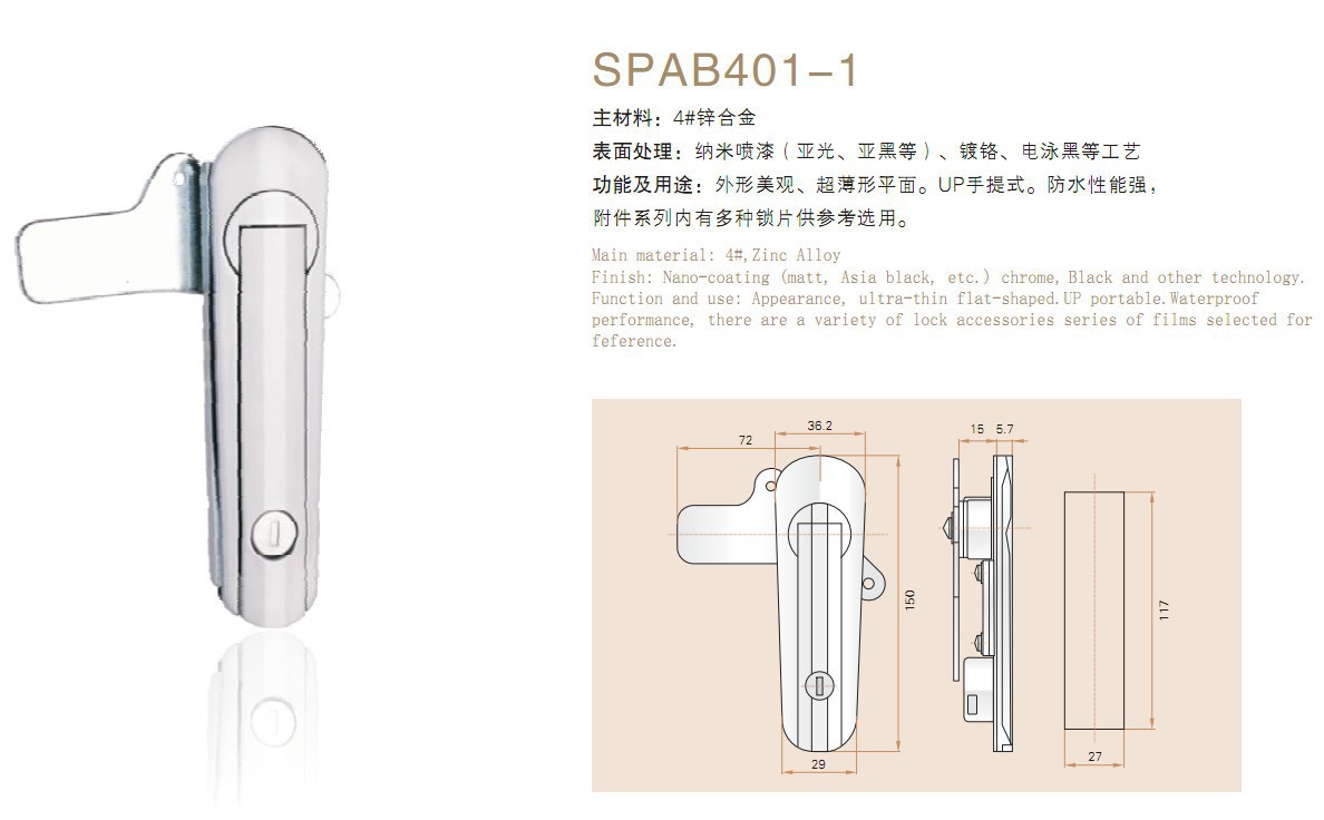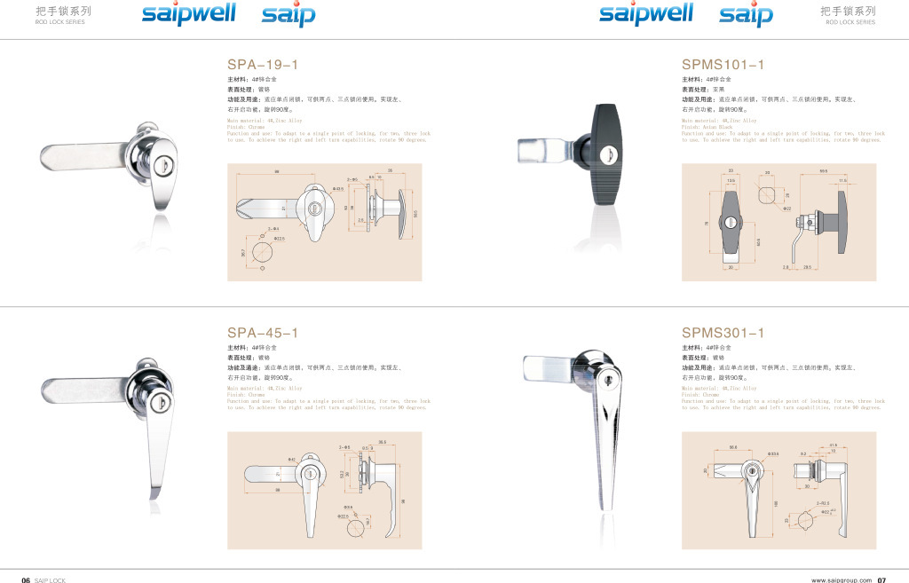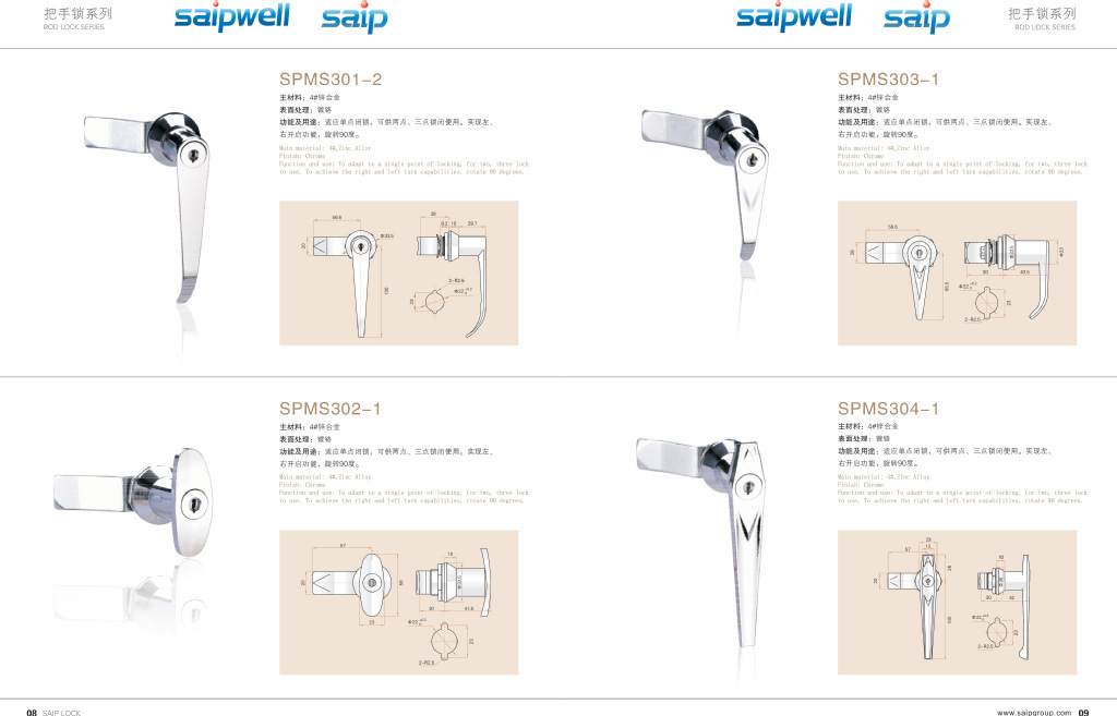 4功用及目的:使用齿轮齿条传动,可进行两点和三点锁定。左右开门安装可对调,外形美观,防水性能强。