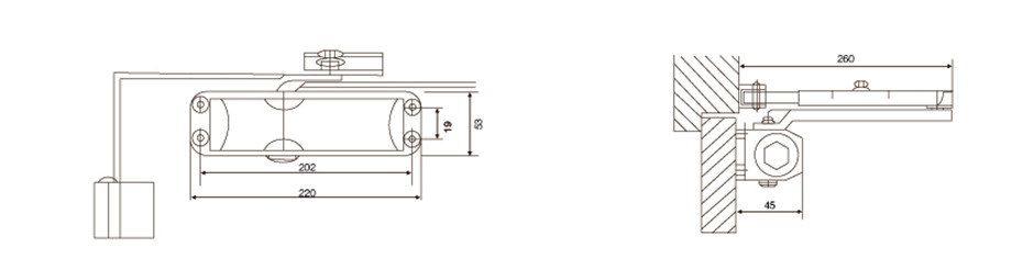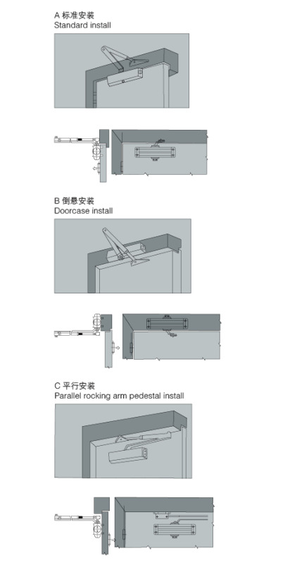 6.适用于室内门和室外门的开门,单向最大开门180°,确切定位在90°(可选);