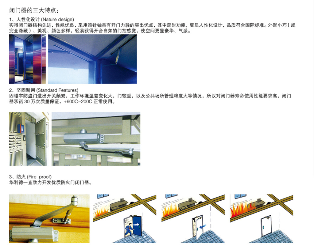 3.合乎欧盟EN1154标准化,通过国家测试中心的GB2698-2005测试,并通过防火和ce测试;