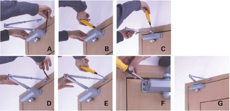 7)提议:新安装的闭门器已使用约7至10天后,请再度拧紧所有螺钉。
