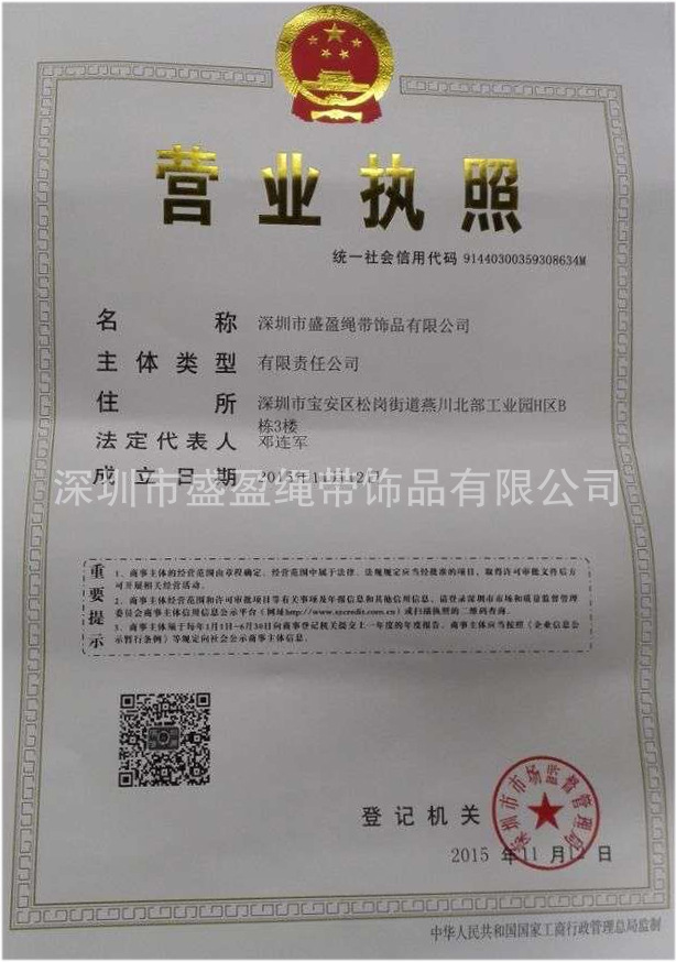 深圳市盛盈绳带饰品有限公司座落广东省深圳市,专门生产发饰,扭绳,编织绳,松紧绳,流苏,行李箱绳,毛根,鞋带,魔术带,手机绳等。