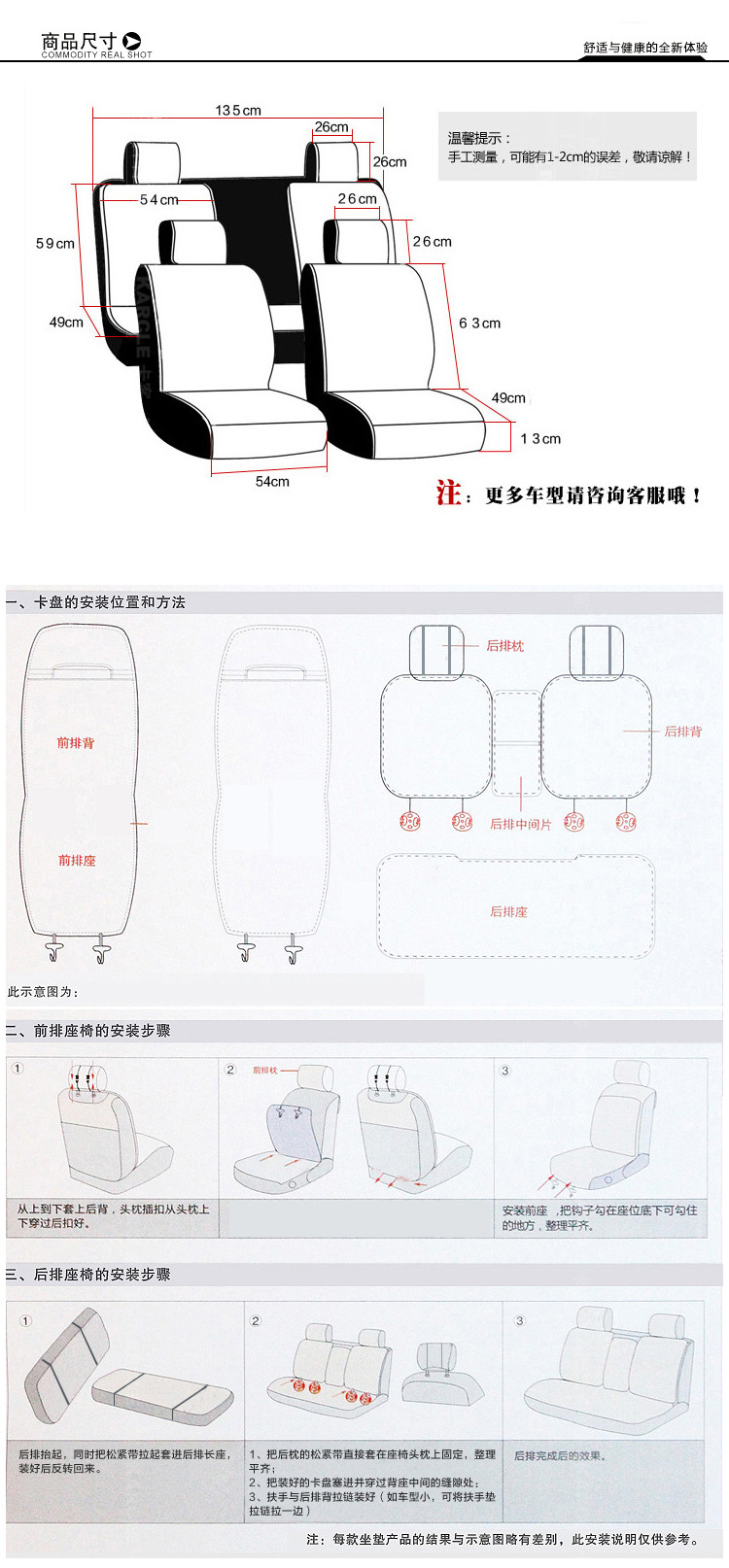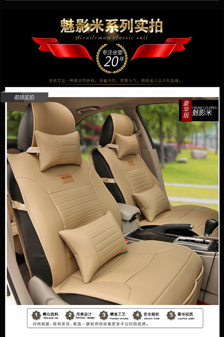 标准型号:五座车型的全套垫子(2个前排,2个后排,1个后基座和1个扶手)