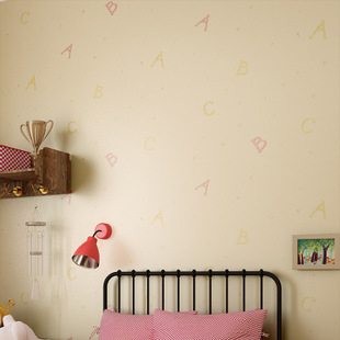 无纺布现代简练拼图ABC孩童房卧室客厅背景墙满墙纸
