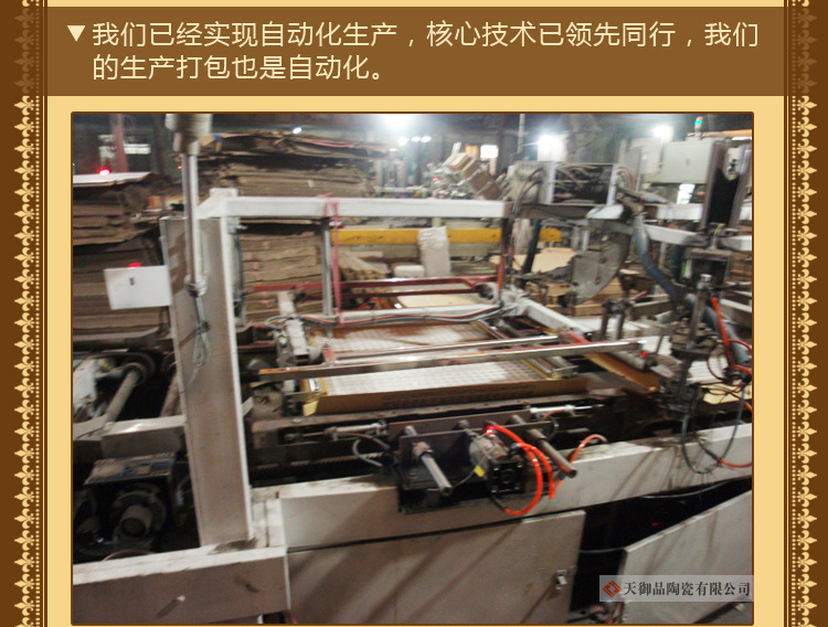 该公司座落中国陶都中心佛山。公司成立以来,建成了一条高标准,高要求的一流生产线,引进了国内外先进的陶瓷生产装置,为全行引进各种装置制订了合理的蓝图,并成立了高效率的生产线。生产系统。