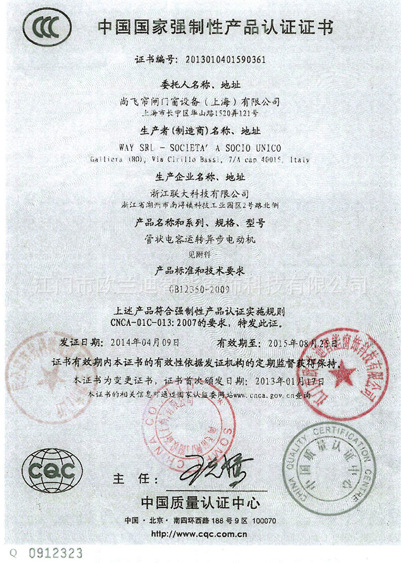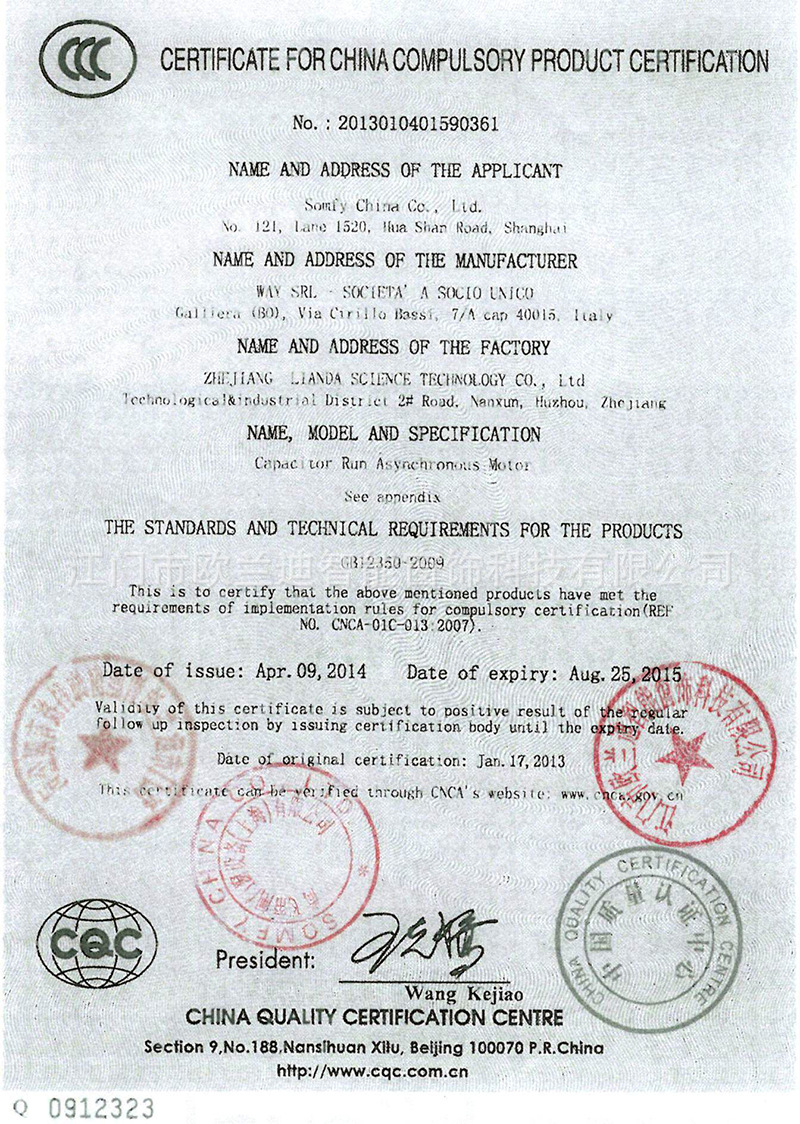 WAY公司已通过严格的ISO9001,CE和其他国际认证,ASAmotor已通过IMQquality认证。motor实行全球5年保修规定!