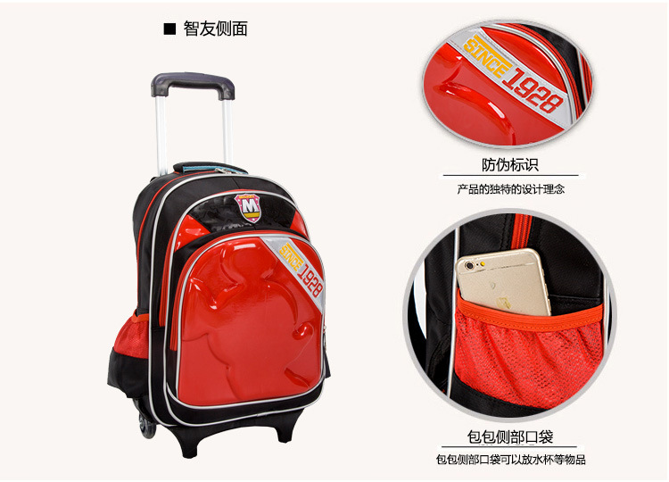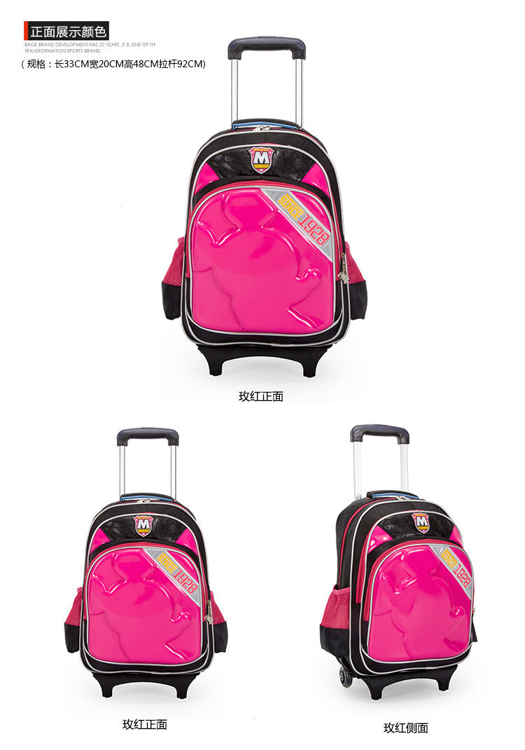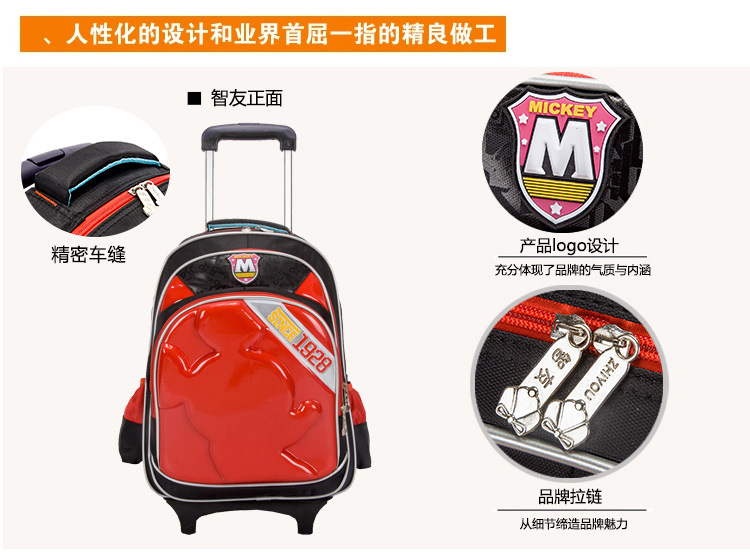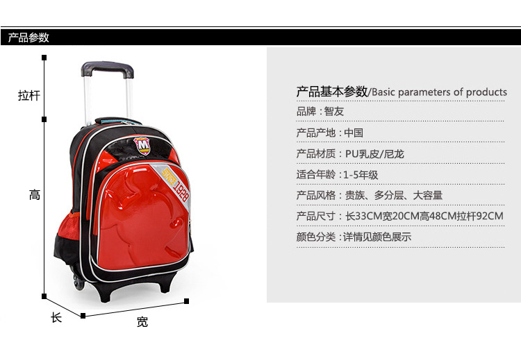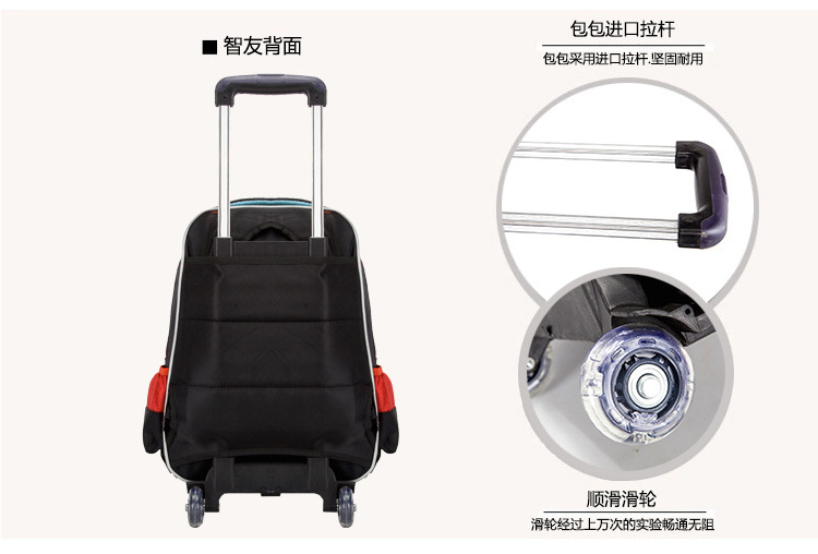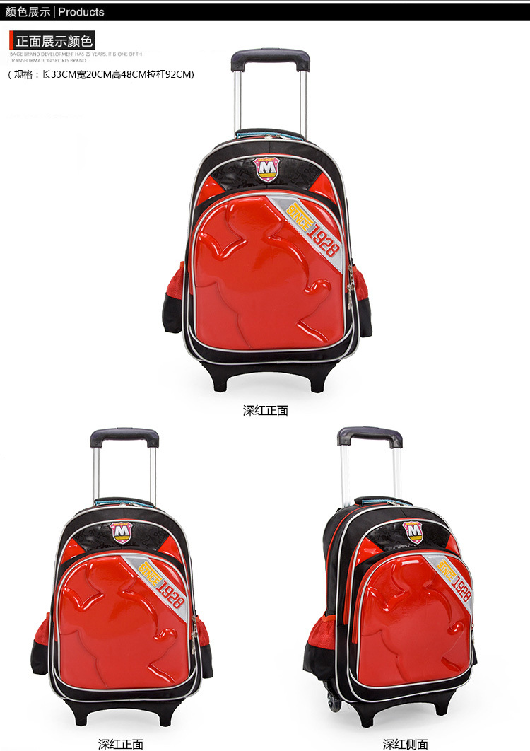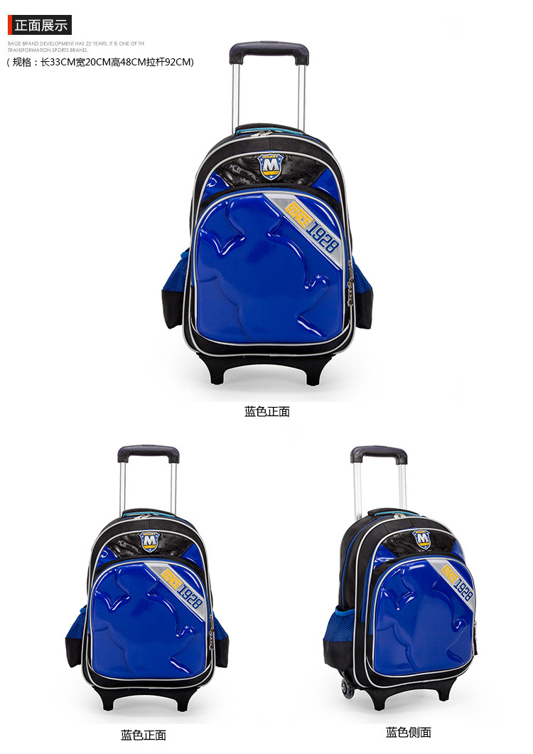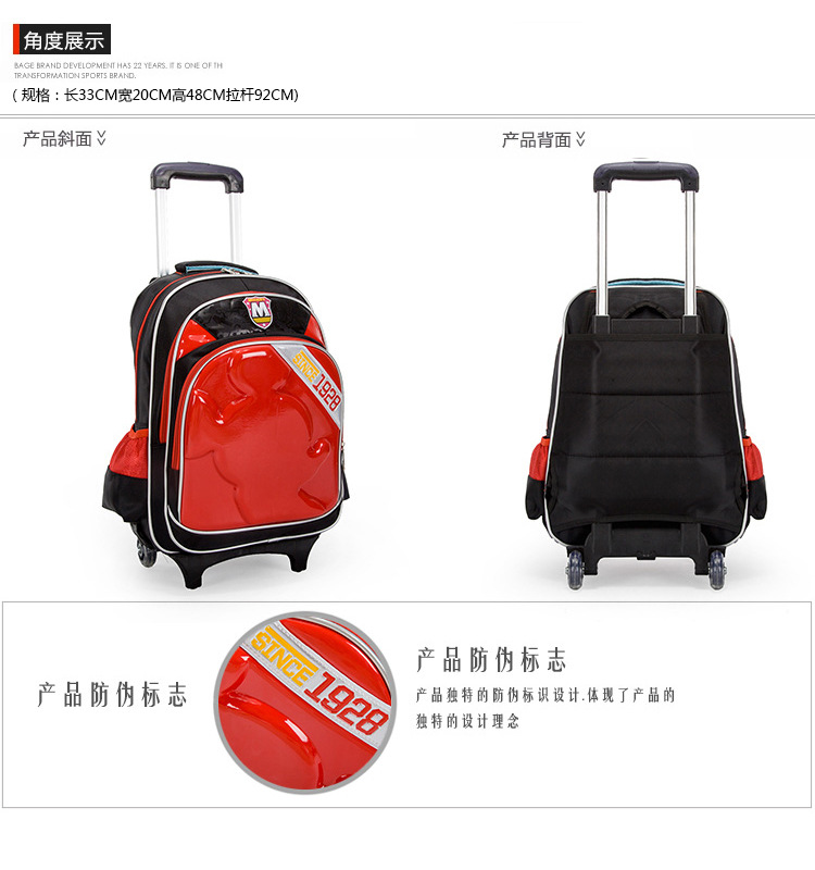 产品详情:该拉杆书包有100多个,支持定制的logo。温馨提醒: