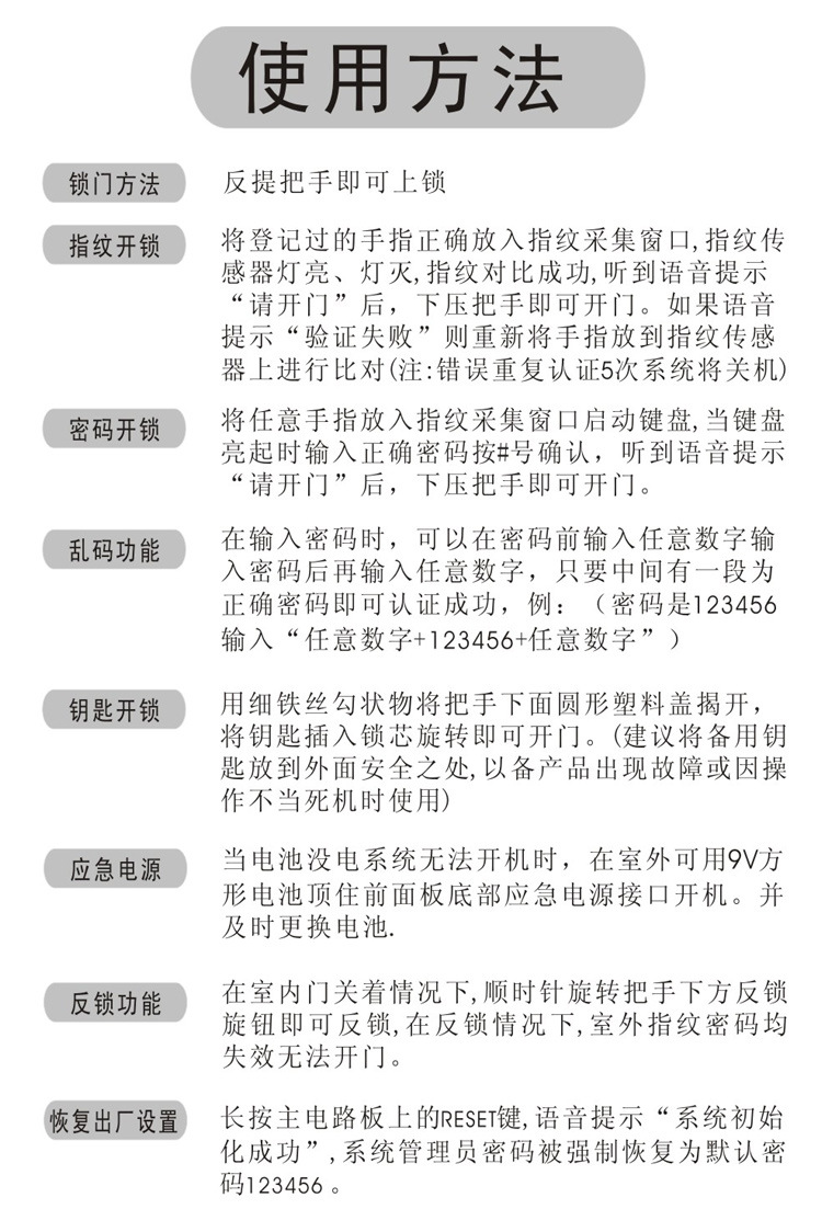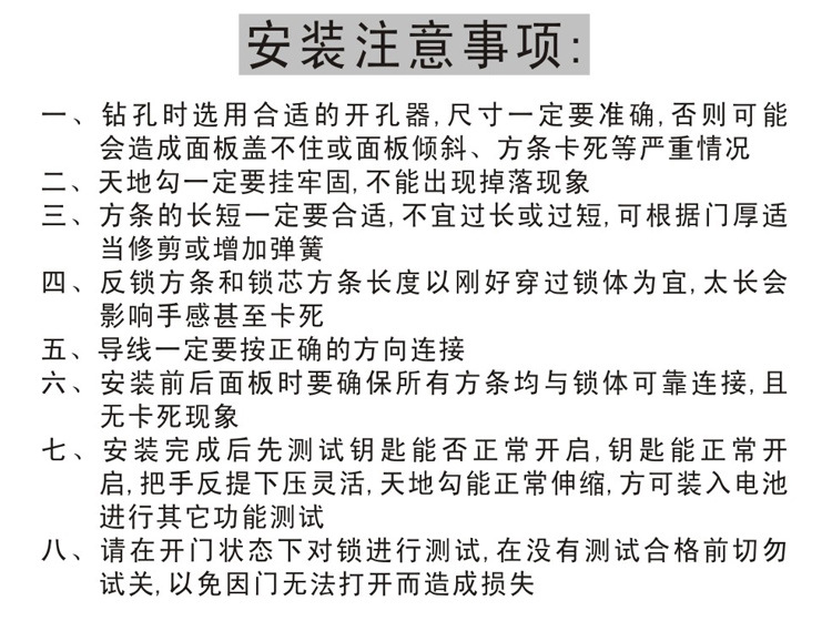 产品详情:敬爱的用户:致谢您选项本公司的指纹密码系列产品。本公司是一家集研发,生产,销售为一体的有限责任公司。专业的研发团队,多项研发成果和外观设计已获国家发明专利。
