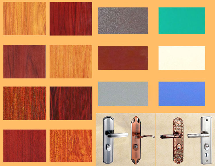 2)根据工艺要求选择表面处理方式和颜色:仿铜门/金属烤漆门/转印门/喷漆门;