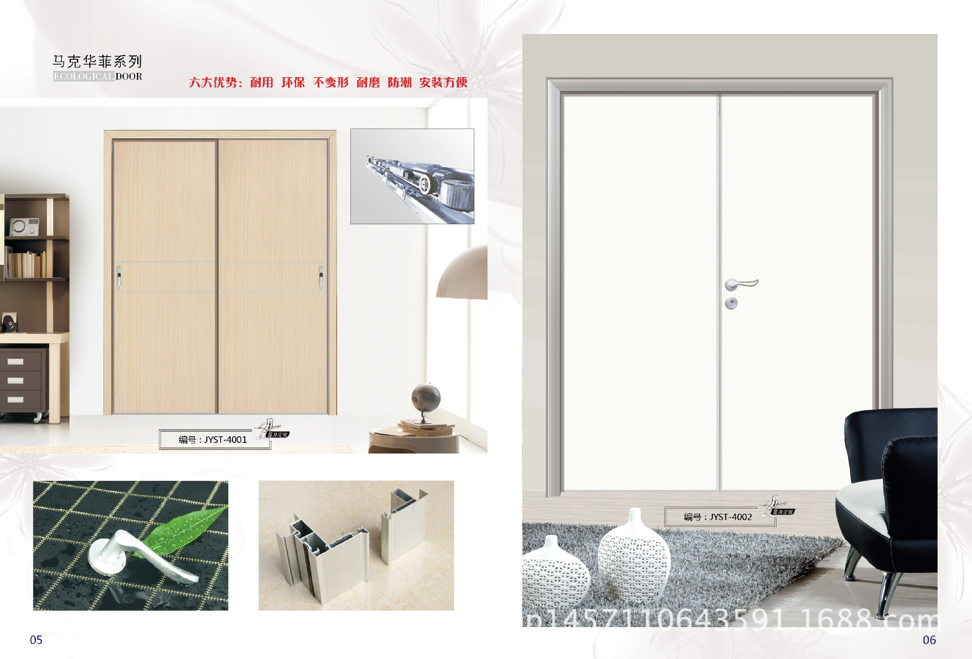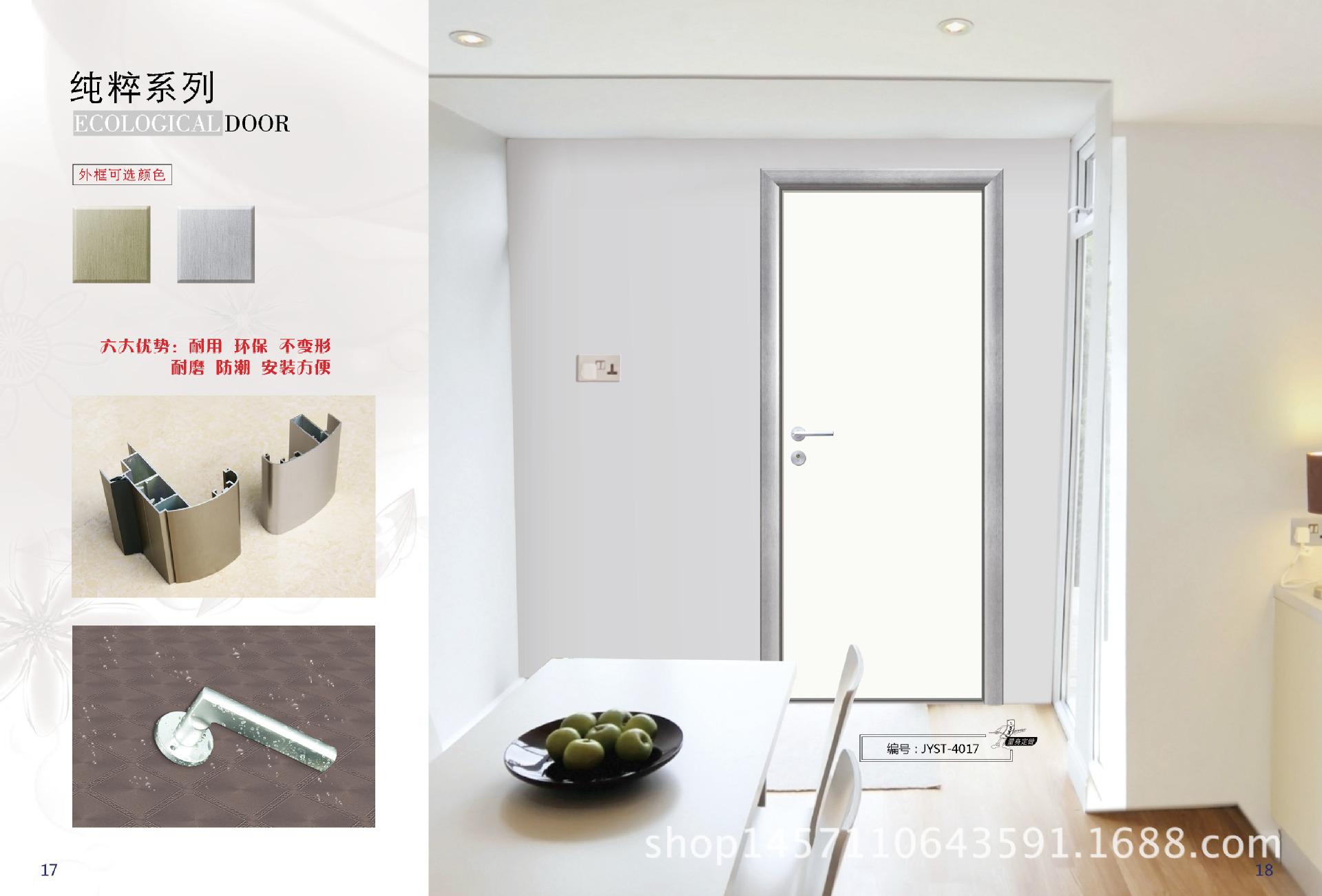 3.门扇的厚度为40mm,良好的气密性使金银生态门具有良好的隔音效果。