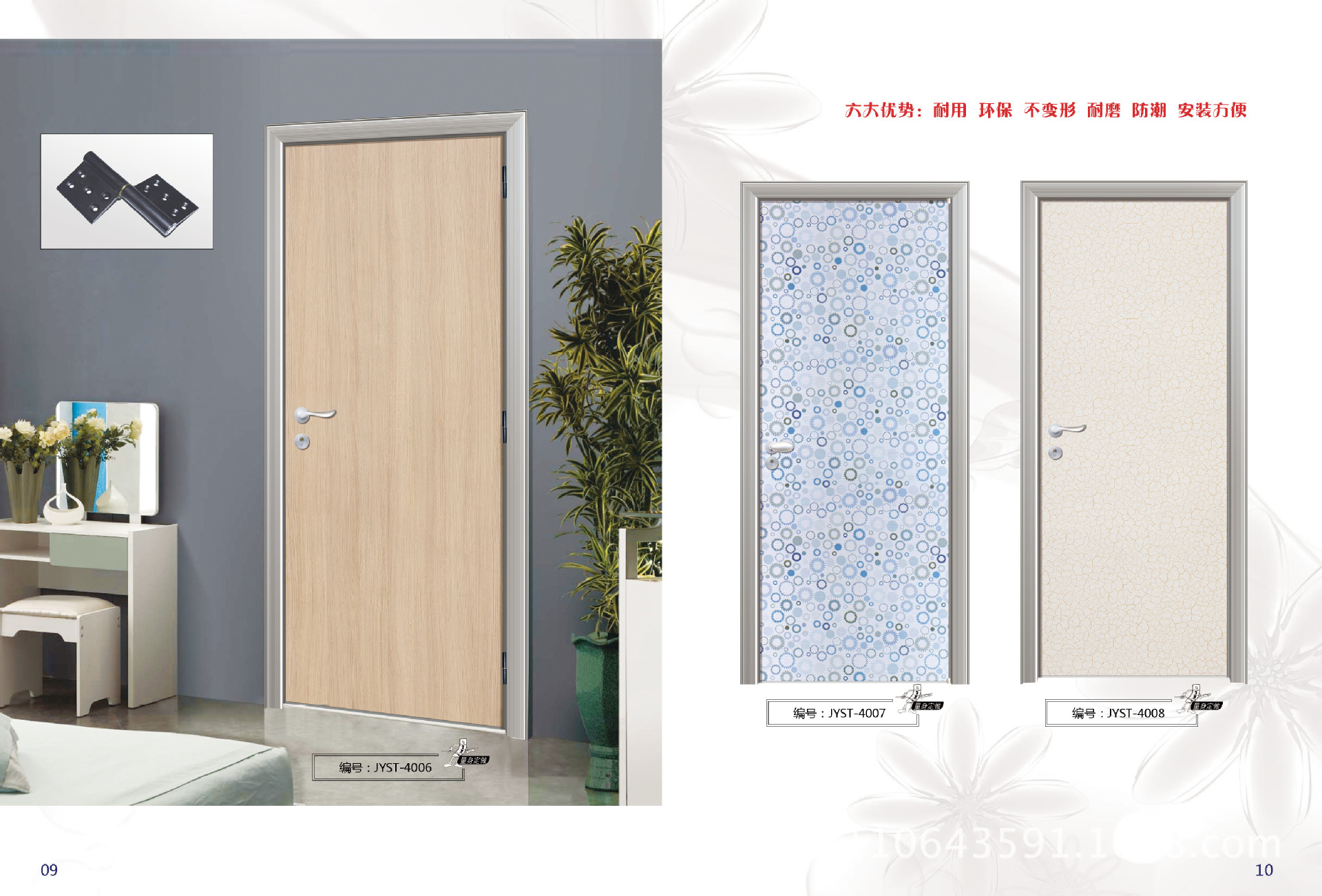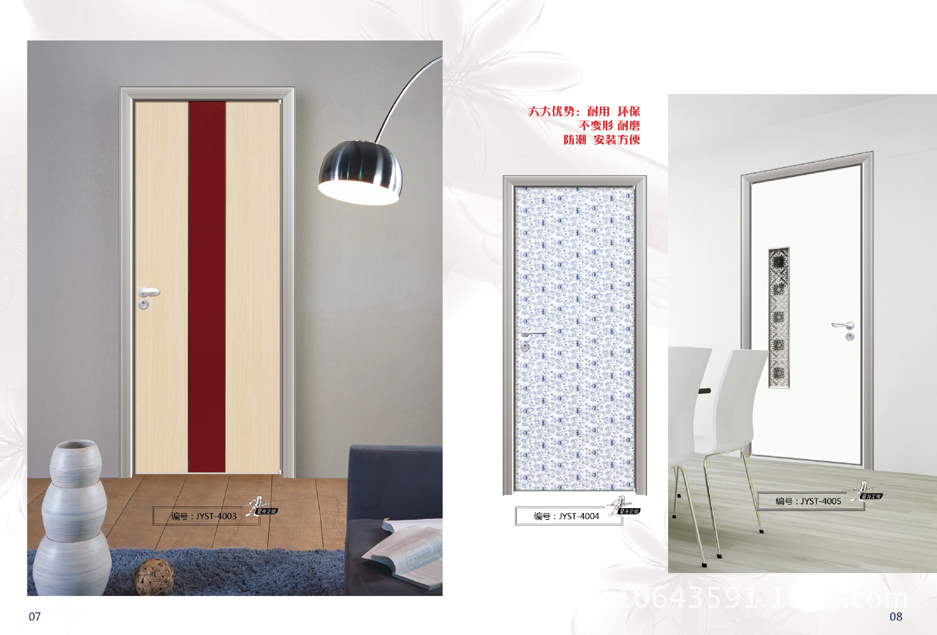 3.门框防潮且不变形:门框的背面和底部采用金银与众不同的防潮技术。与同类产品相比之下,金银门框具有更好的防潮效果。