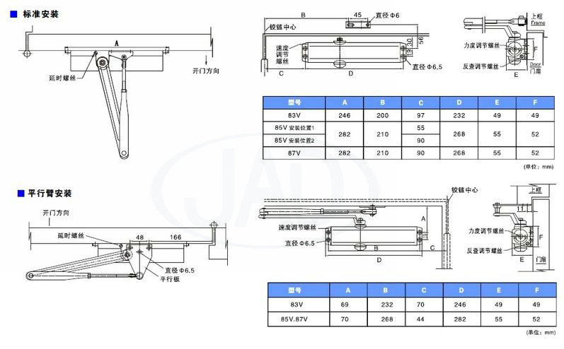 定位特性:具备定位特性的闭门器可以将门的位置设立在70-150度之间的任何位置;