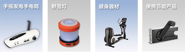 普遍用以手摇收音机,手摇手电筒,手摇打火机,便携式电子产品等。