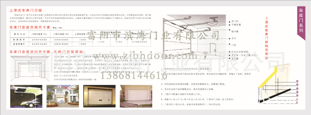 滨海自动车库门将以其不错的性能和价钱,优良的品质和周到的售后服务满足各行各业的用户的需要。